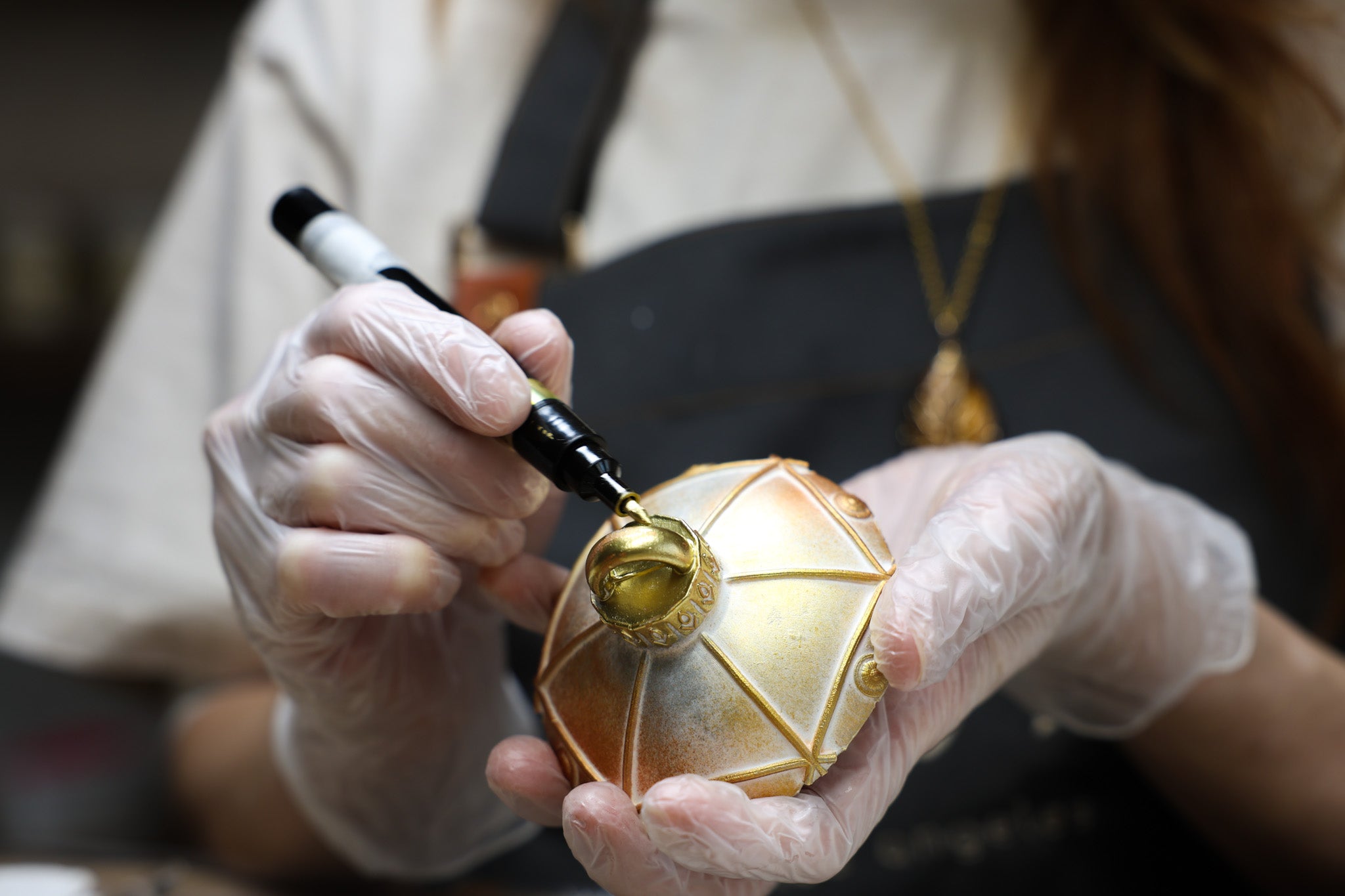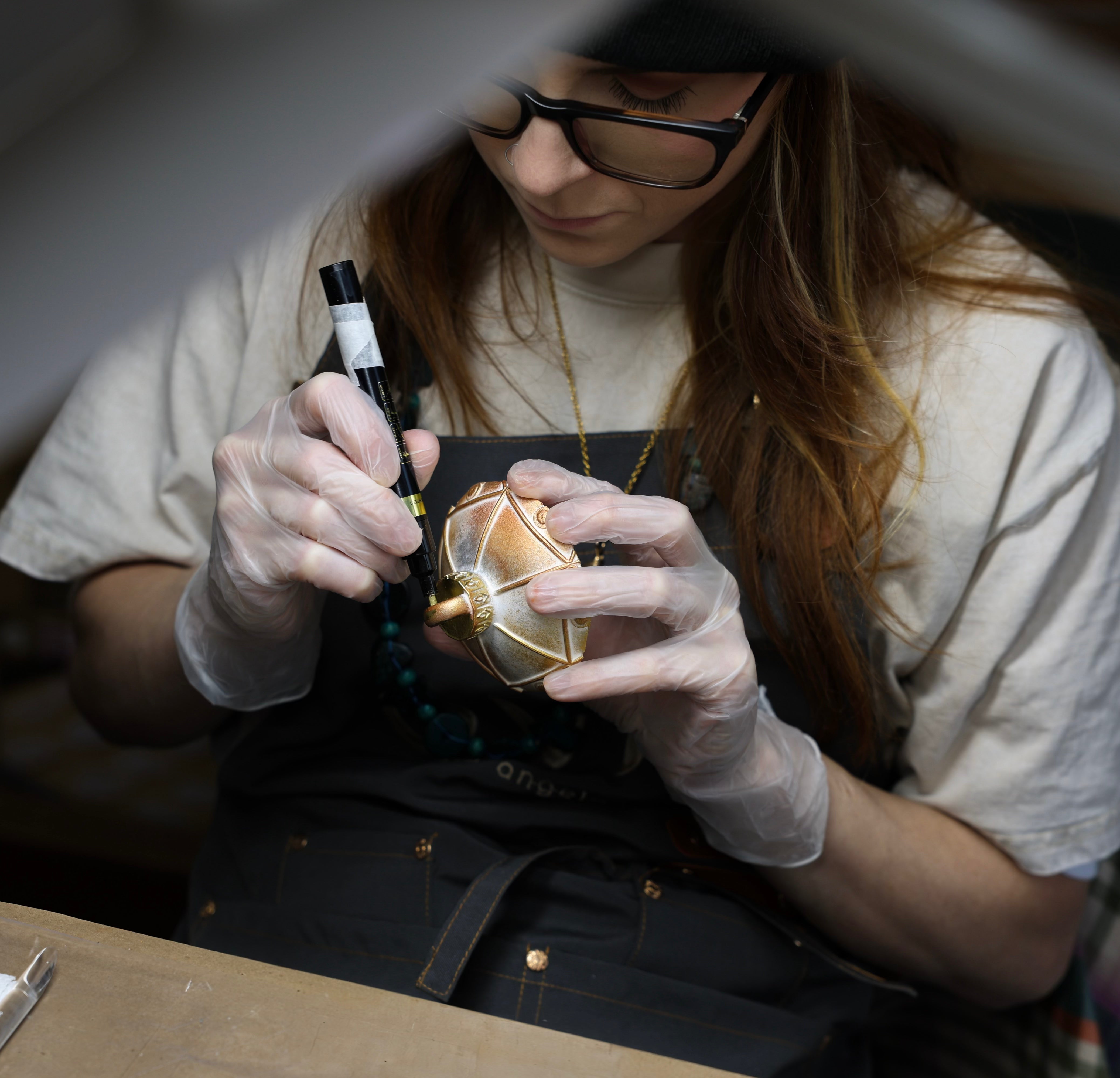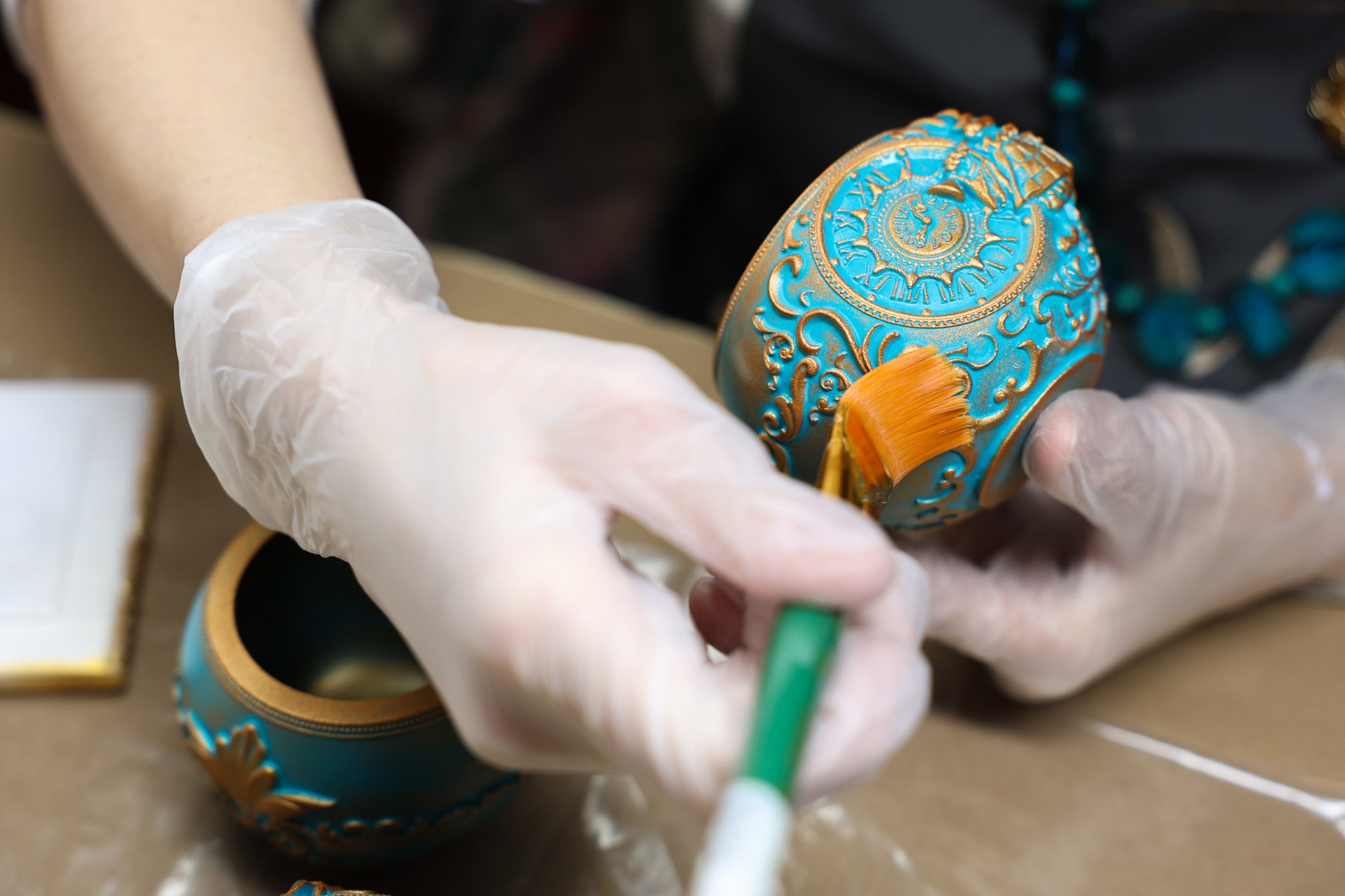 Every detail is finished by hand using brushes and sponges, giving each candle its unique character, shading, and artistic texture.